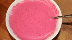 - لخلط الصلصة ، اخلطي زيت الزيتون والملح والفلفل وعصير الليمون. فرك قطعة من البنجر على مبشرة راقية وأضفها إلى الصلصة ، يضاف اللبن وتخلط جيدا. الصلصة تحصل جدا لون قرمزي جميل.