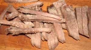 - قطع اللسان المغلي الباردة إلى شرائح رقيقة.