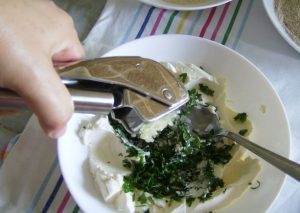 ضعي الجبنة الكريمية في وعاء (يمكنك أيضًا الطهي باستخدامه) الجبن الرائب) ، يضاف البقدونس المفروم (3 فروع) ، القشدة الحامضة والثوم المفروم والملح وتغلب جيدا على الكتلة أصبح رائعا.