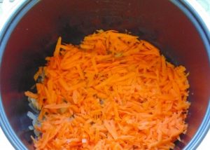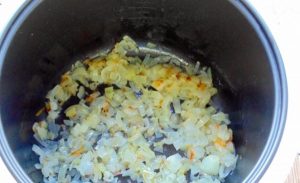 - قم بتشغيل برنامج “Frying” في multicooker (40 دقيقة). تغميق القوس في الزيت لمدة 5 دقائق.