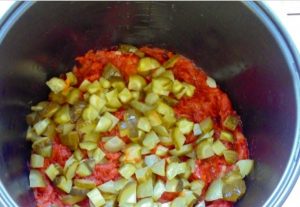 - في هذا الوقت ، يقطع البصل والخيار والجزر.