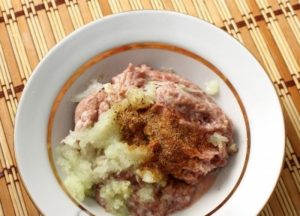- صب التوابل في اللحوم وفرك البصل الثاني ، محرك الأقراص صفار البيض. نحن شكل كرات اللحم.