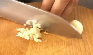- يقطع البصل ناعما. يقطع الثوم. يقلى على حرارة منخفضة في الزبد حتى تصبح طرية.