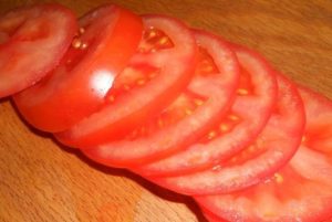 - قطع الطماطم إلى دوائر.