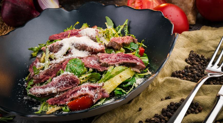 لحم بقر لذيذ ومزيج سلطة مختلطة من السهل الطهي في المنزل ، أنصحك أن تفعل ذلك على طاولة العطلات أو عشاء رومانسي.