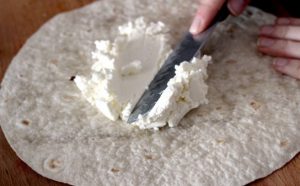 الجبن المنزلية (½ جزء) ينتشر على التورتيا بالتساوي نوزع. اغسل الجرجير وجففه على المنشفة.