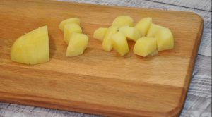 - قشر البطاطا وقطعيها إلى مكعبات متوسطة الحجم.