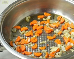 - يقلى البصل مع الجزر في زبدة ساخنة.