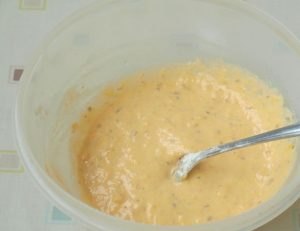 - اليقطين المملح المهروس في البطاطا المهروسة ، إضافة التوابل ، تخلط مع البيضة ، ثم الدقيق ، يعجن العجين.