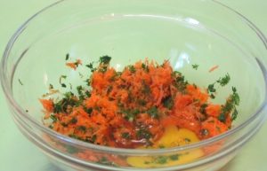 - يتم الجمع بين الجزء الثاني من الجزر مع الشبت والبيض ، ووضع الملح والفلفل المطحون الطازج ، هز كل شيء.