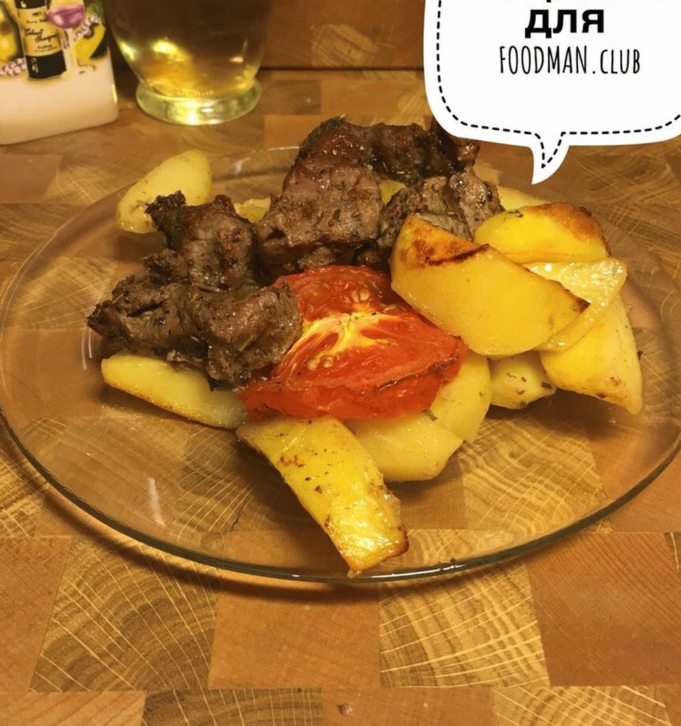 - نضع البطاطا في طبق خبز ، في الوسط الذي نصنعه الاكتئاب صغير ، ووضع الحمل.
