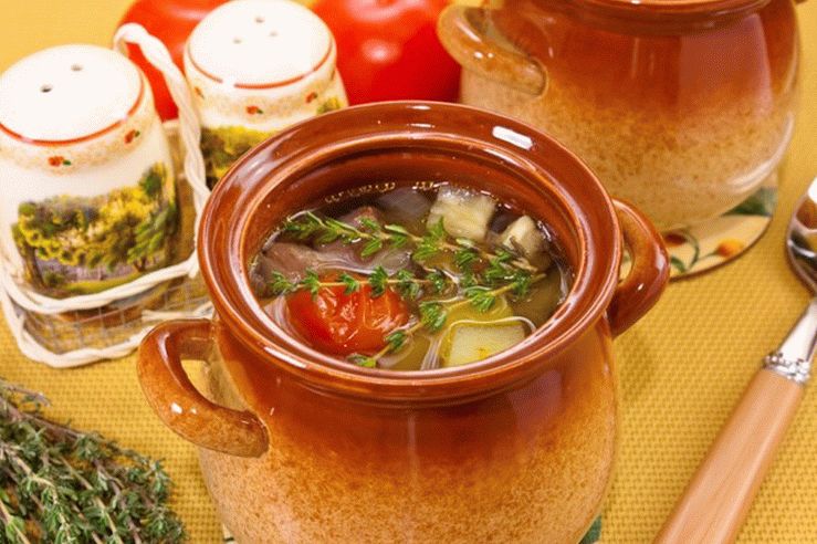 سيتم طهي الحساء اللذيذ والشهي في المنزل مع لحم الغنم. لحم الضأن يمكن استبدالها بلحوم البقر ولحم الخنزير والباذنجان مع الكوسة.