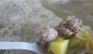 - عندما تكون الأقواس ، ضع كرات اللحم في الحساء.
