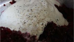 - يُمزج الكريما الحامضة والبنجر المبشور والملح والفلفل.