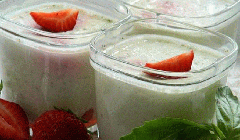 - يضاف اللبن والجبن مع الريحان للحليب وتخلط. كل خفقت.