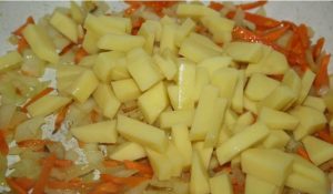 - في ستيوبن ، نمر البصل بالجزر وننتقل إليه شرائح البطاطا ، ورقة الغار.