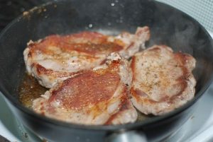 - يُقطع لحم الخنزير في قطع بلاستيكية ويقلى مع التوابل حتى جاهزة.