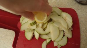 - يرش العصير مع نصف الليمون حتى لا يغمق الكمثرى.