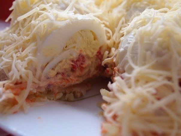 تزييت مع المايونيز ويرش مع الجبن المبشور على مبشرة الخشنة.