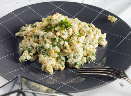 سلطة بيض مقرمشة لذيذة تجمع هش الكرفس والخيار والملمس البيض الحساسة ، سهلة طبخ في المنزل. أنصحك بإعداد هذا الطبق لعشاء خفيف.