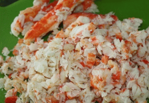 - لحم السلطعون مفروم جيدًا ويخلط مع الصلصة الحارة تابوجان ، تشيلي ، مايونيز ياباني.