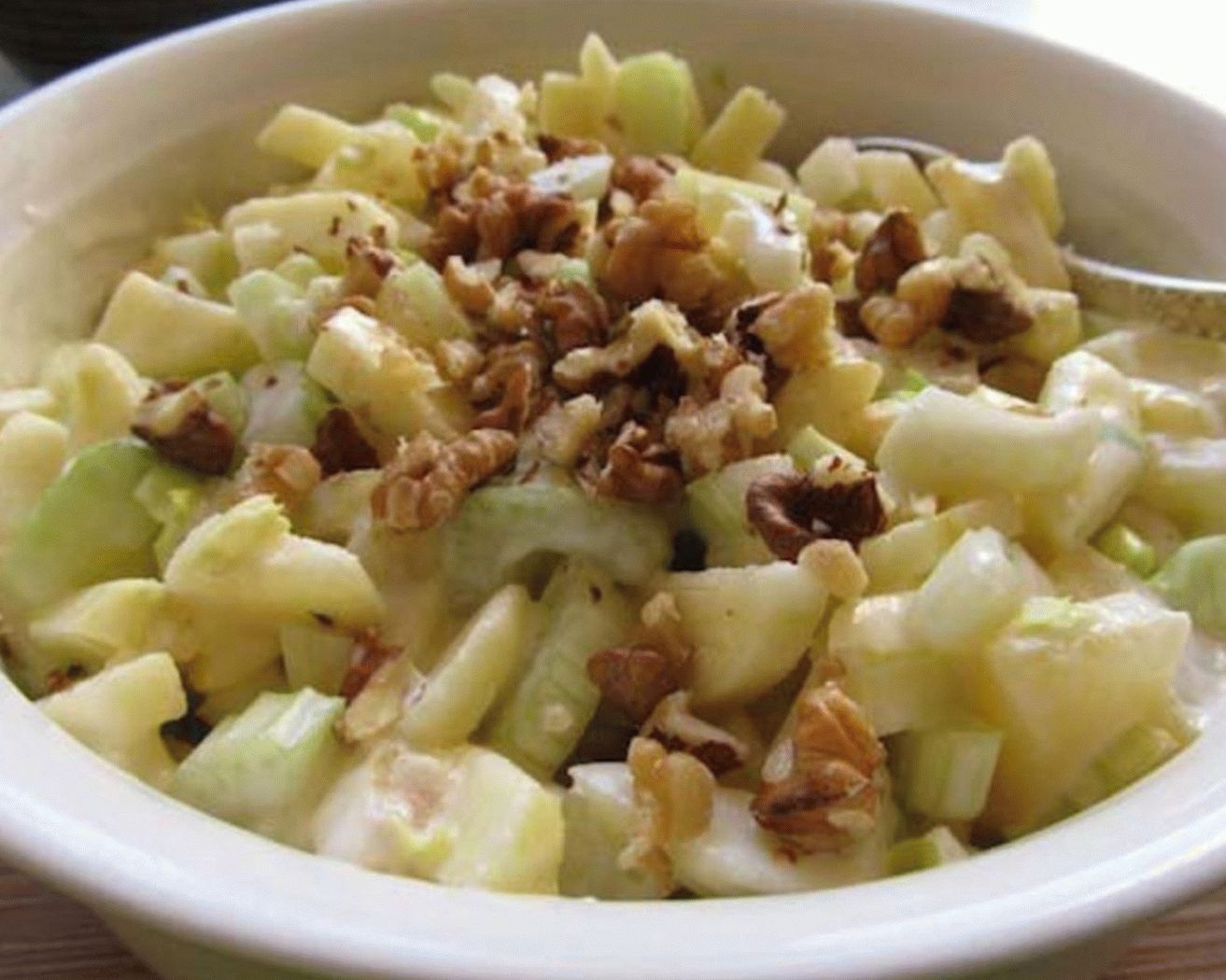سلطة أصلية ولذيذة مع مزيج غير عادي الأناناس الحلو والكرفس العصير. اصنع مثل هذه السلطة يوصي إلى طاولة الأعياد في المنزل. جعلها سهلة جدا و بسرعة.