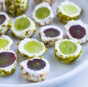 المقبلات الأصلية واللذيذة من الأخضر والأحمر العنب وجبن الماعز الطازج والبندق والفستق ممتازة سوف تذهب إلى النبيذ. طهي كرات الجبن هذه في المنزل ليس على الإطلاق صعوبة.
