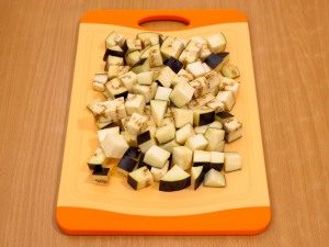 - قطع الكراث إلى حلقات نصف رقيقة. الطماطم و اقطع القرع إلى قطع صغيرة. الباذنجان والحلو زهر الفلفل.