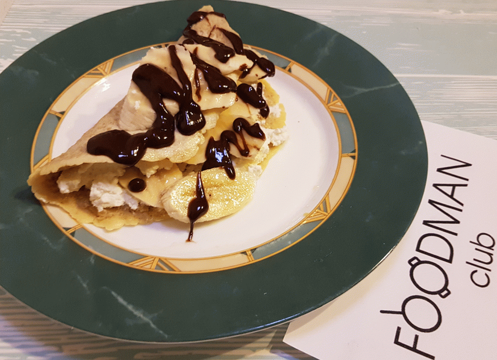 - فطيرة تنتشر في الأعلى مع الجبن المنزلية ووضع على نصف الموز.