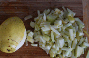 - اغسل الكمثرى ، وأزل اللب ، وختم بالقش.