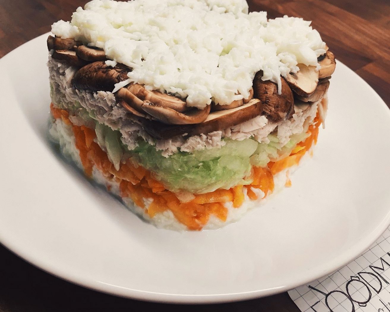 سلطة مع الدجاج والفطر لأولئك الذين يرغبون في تناول الطعام لذيذ ، ولكن لا ضرر على الرقم. إذا لم يكن لديك أي قيود على إضافة الملح ، هل سيكون ببساطة إلهي؟ تأكد من طهي الطعام في المنزل!