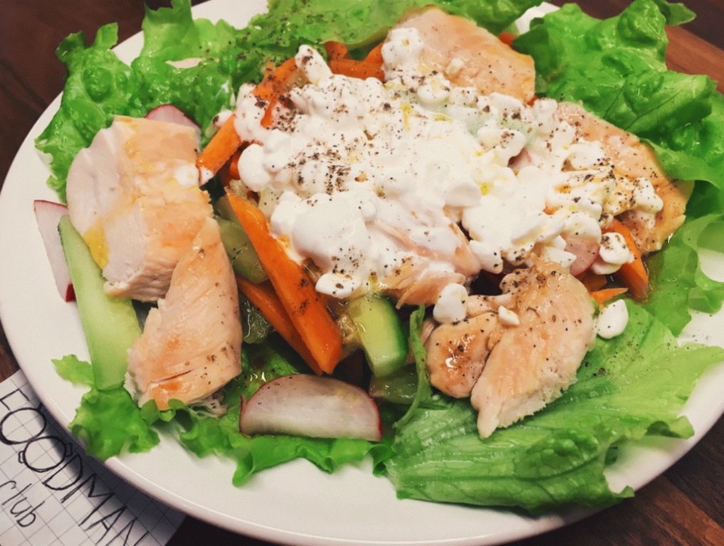 سلطة غير عادية ولذيذ جداً مع خثارة الحبوب! حاول الطهي ، ولن تكون غير مبال.