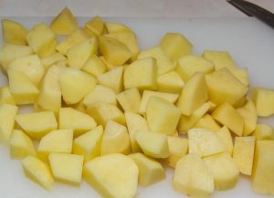 - اغسل البطاطا وقشرها وقطّعها إلى قطع كبيرة.
