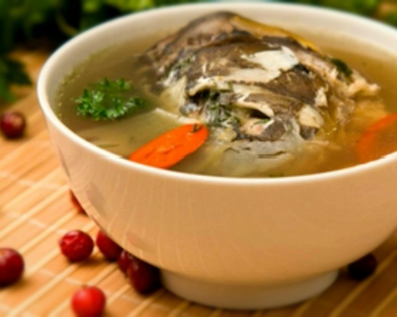 - يُسكب السمك بالماء البارد ، ويُغلى المزيج ويُزال الرغوة. مرق الملح ، إضافة ورقة الغار. طبخ لمدة 25 دقيقة.