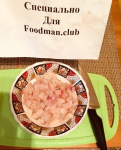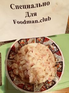 - يُغسل القشر ويُقطع ويُقطع ، ثم يُمزج البصل مع بيض الدجاج والدقيق مع السمك والملح جميع المحتويات.