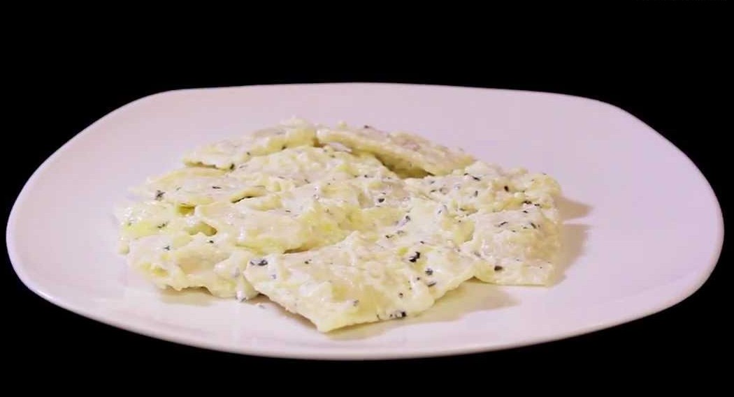 يمكنك استخدام الرافيولي الإيطالي لصنع عجين خاص أو عجين زلابية. لملء الكبد لم يكن جافًا ، أضف الفطر المقلي إليه ، وعند التقديم صب صلصة كريم رافيولي لذيذ.