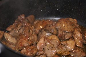 - نقطع الفطر ونحمره حتى يصبح لونه بنياً ذهبياً.