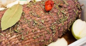 طبق آخر من المأكولات الإنجليزية ، وهو كله قطعة من اللحم البقري المطبوخ في المنزل في الفرن. عادة ما تؤخذ لحم رخامي مع بقع دهنية تشبه الرسم الرخام ، ومن هنا جاءت تسميته. الدهون بين ألياف اللحم ستوفر العصير على الطبق ، يذوب أثناء الطهو ويتغذى من الداخل. لحم البقر المشوي اللذيذ ليس من الصعب طهيه.
