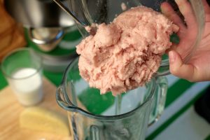 - ضعي اللحم المفروم في وعاء الخلاط ، واسكبي الكريم.