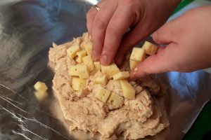 - نقطع الجبنة إلى مكعبات صغيرة.