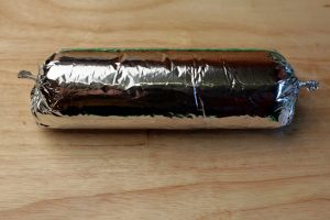 - من الكتلة نحن تشكيل السجق. لف بلطف في احباط في حوالي 2-3 طبقات.