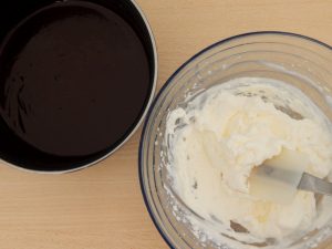 - تُخفق الكريما وأدخلها تدريجياً في خليط الشوكولاتة. استعداد ضع الموس في الثلاجة لمدة 60 دقيقة.