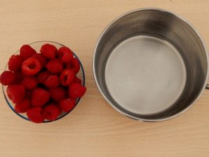 - في stewpan ، حرارة السكر بالماء حتى السكر سوف تذوب. يضاف التوت ويطهى على نار خفيفة حول خمس إلى عشر دقائق.