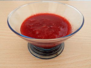 - تصفية هريس التوت الانتهاء من خلال مصفاة.