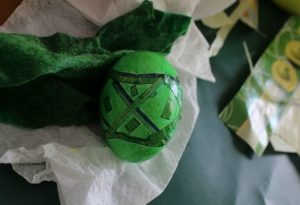 - أخرج الورق من البيض المجفف. يمكن أن تفعل مختلفة الحلي ، واستخدام الأصباغ والمناديل المختلفة من ألوان مختلفة.