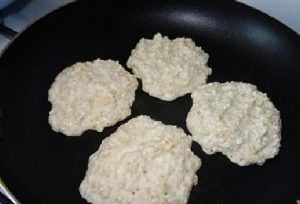 - نقوم بتسخين المقلاة بأسفل غير لاصق. يزيت قطرة من الزيت. نشر الكتلة في مقلاة مع ملعقة ، يقلى حتى ذهبية على كلا الجانبين على نار معتدلة.