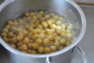 - يُسكب فيليه بالماء المغلي ويغلي لمدة 10 دقائق ، ثم يصب في الدجاج الحمص.