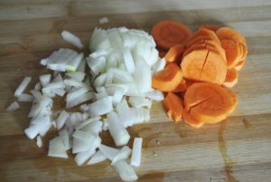 - قم بطحن الخضروات حسب رغبتك ، ولكن احتفظ بالشرائح عن نفس الحجم.