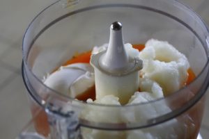 - رمي البرسيمون المفروم والجبن وخفيفة في الخلاط إذابة الليمون شربات.