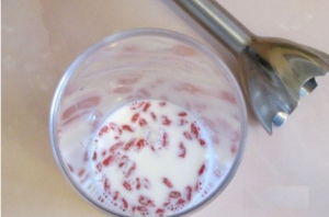 - ضع غوجي التوت في وعاء الخلاط واملأ الثلث الحليب. سوط الكتلة.